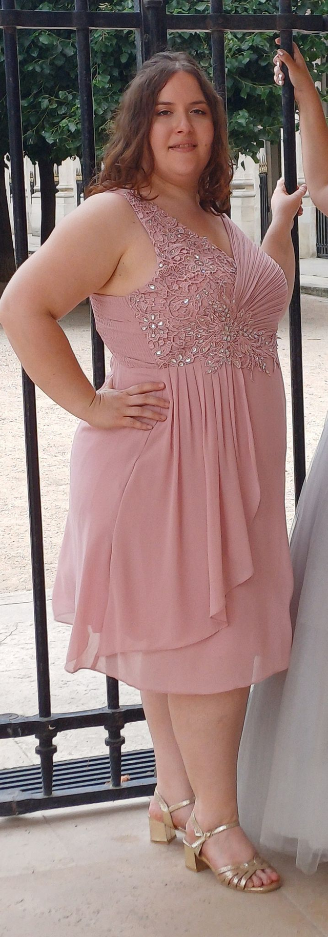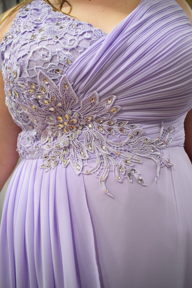 Brillez avec douceur dans cette magnifique robe rose poudré, pensée pour sublimer toutes les morphologies. Son haut brodé de perles et de sequins dessine délicatement le buste, tandis que les drapés fluides en mousseline tombent avec grâce sur les courbes.